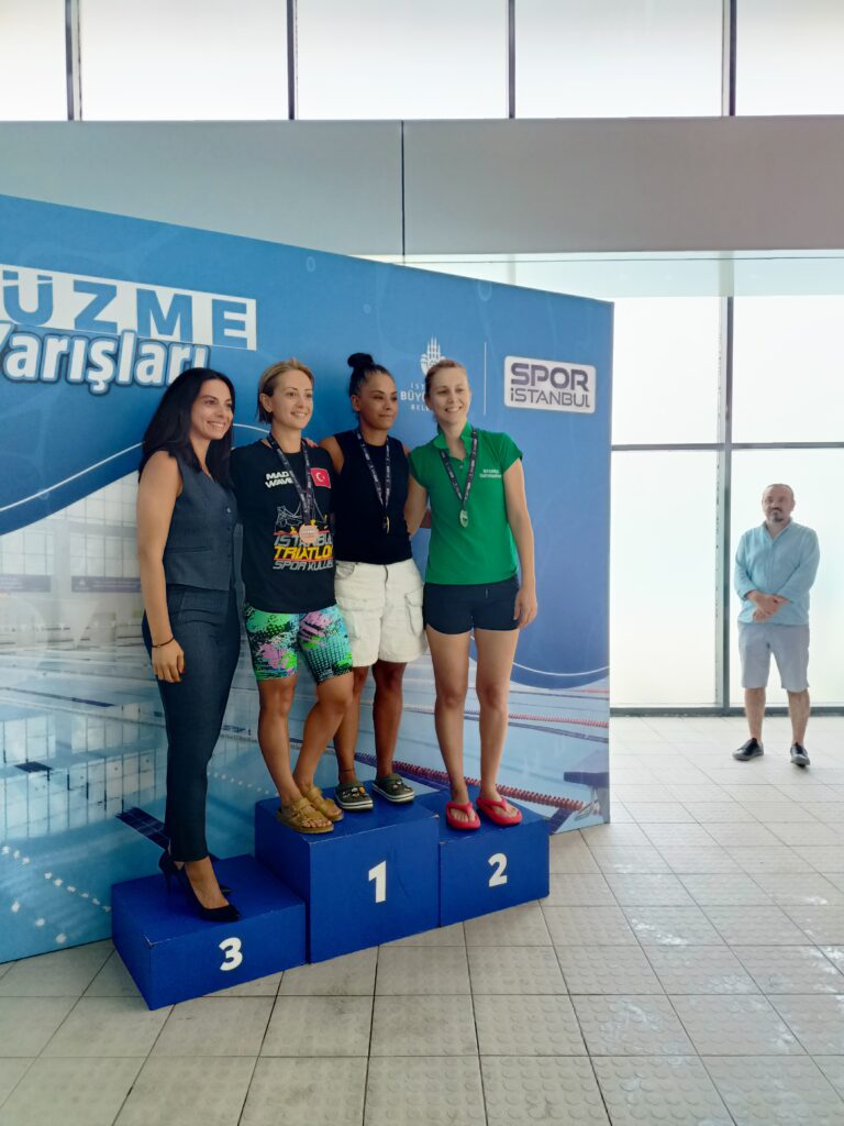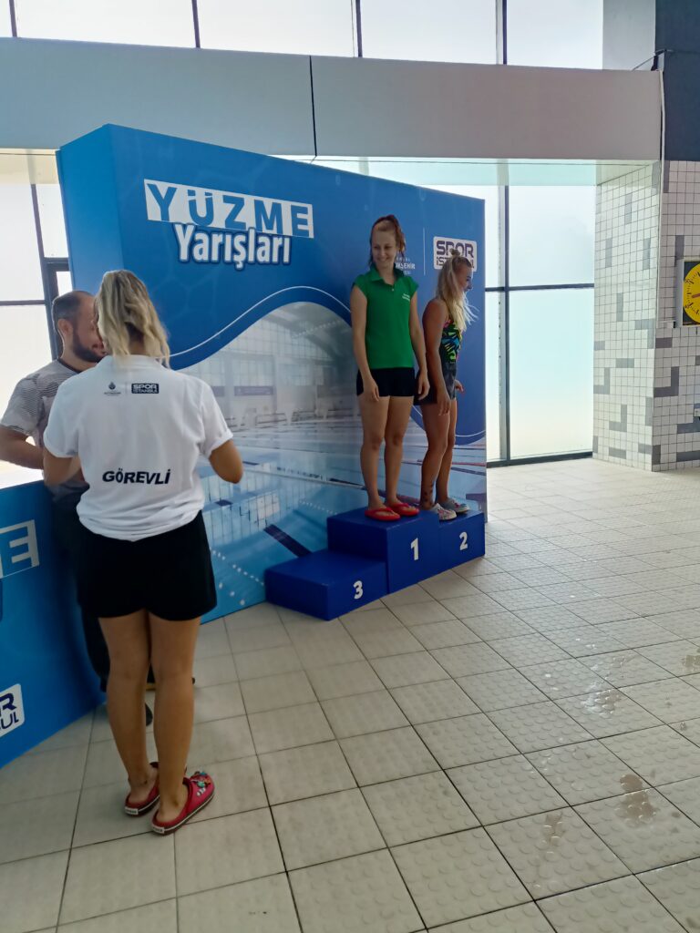 En fazla 2 seçim yapmak zorunda olduğumuz için 100 m serbest ve 50 m kurbağa yüzdüm. 4″50 Karışık mix bayrak yarışında da Sırtüstü yüzerek bu stile de official olarak geçmiş bulunmaktayım (: